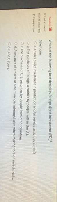 Solved Which Of The Following Best Describes Foreign Direct Chegg Com